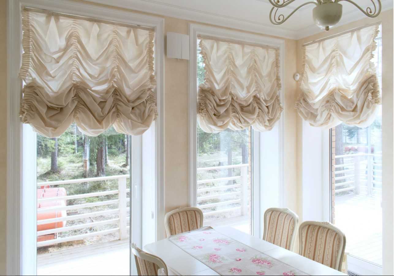 В моде сейчас пышные и скромные драпировки с зубцами, лентами и кистями. Самый простой вид – полоса ткани, присборенная с помощью тесьмы. Сложные могут состоять из нескольких отдельных элементов.