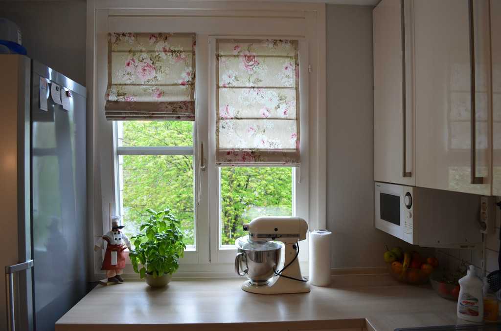 Римские, или рулонные шторы, отличаются массой достоинств. Они совмещают в себе красоту портьер и удобство жалюзи, и прекрасно подходят для установки на кухонном окне. Римские шторы крепятся вверху к карнизу и представляют собой плотную полосу ткани, собирающуюся складками при подъеме.