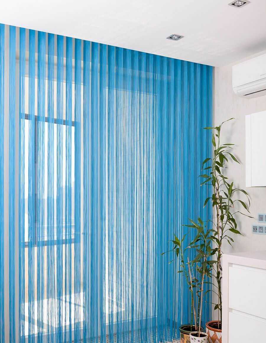 Нитяные варианты. Их можно рассматривать как вариант тканевых — они представляют собой тончайшие полоски ткани, более похожие на нити. Такие изделия идеально вписываются в интерьер, делая его легким и изящным. Единственный недостаток нитяных моделей — высокая цена.