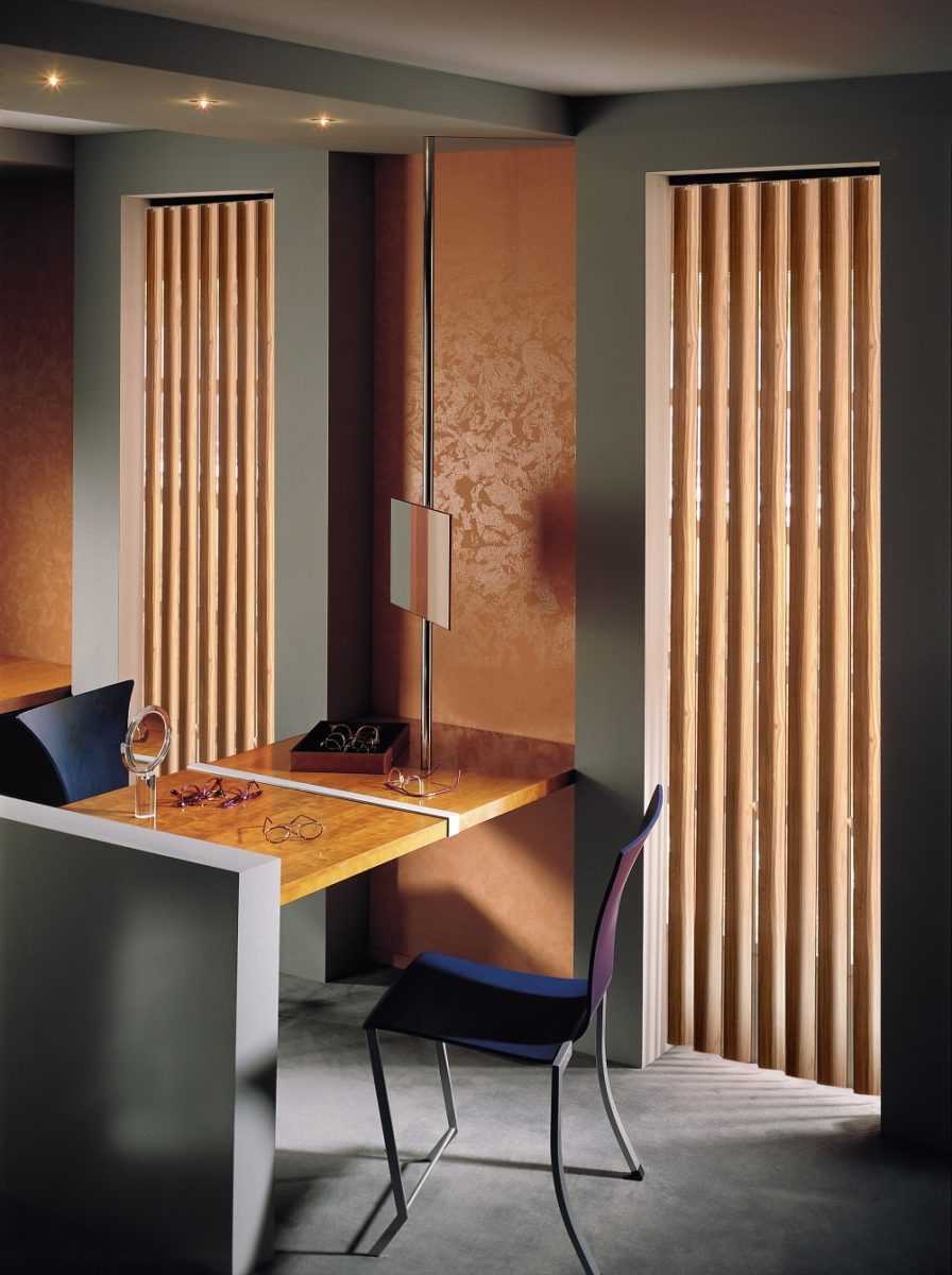 Иногда можно увидеть и деревянные ламели, но встречаются они редко, так как много весят и требуют особого ухода.