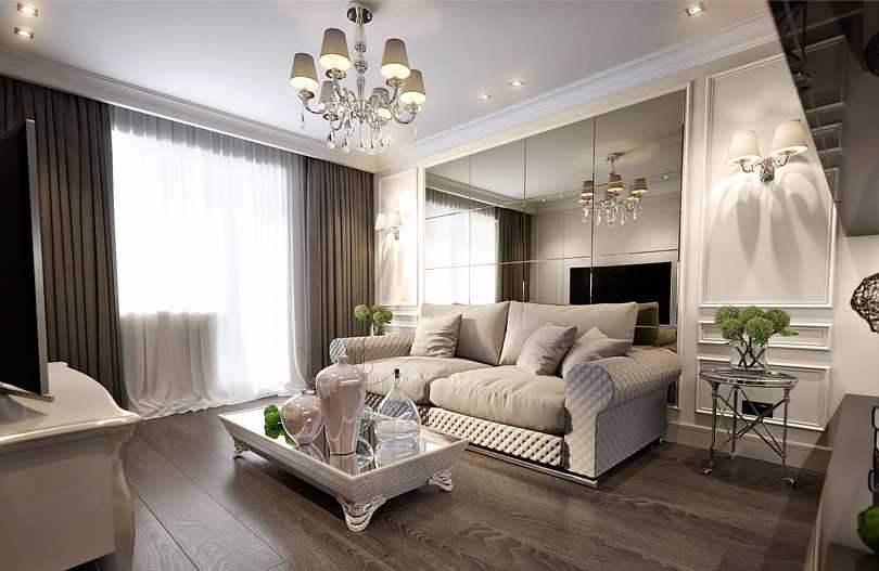 Зеркальная плитка в гостиной, как особый тип украшения.