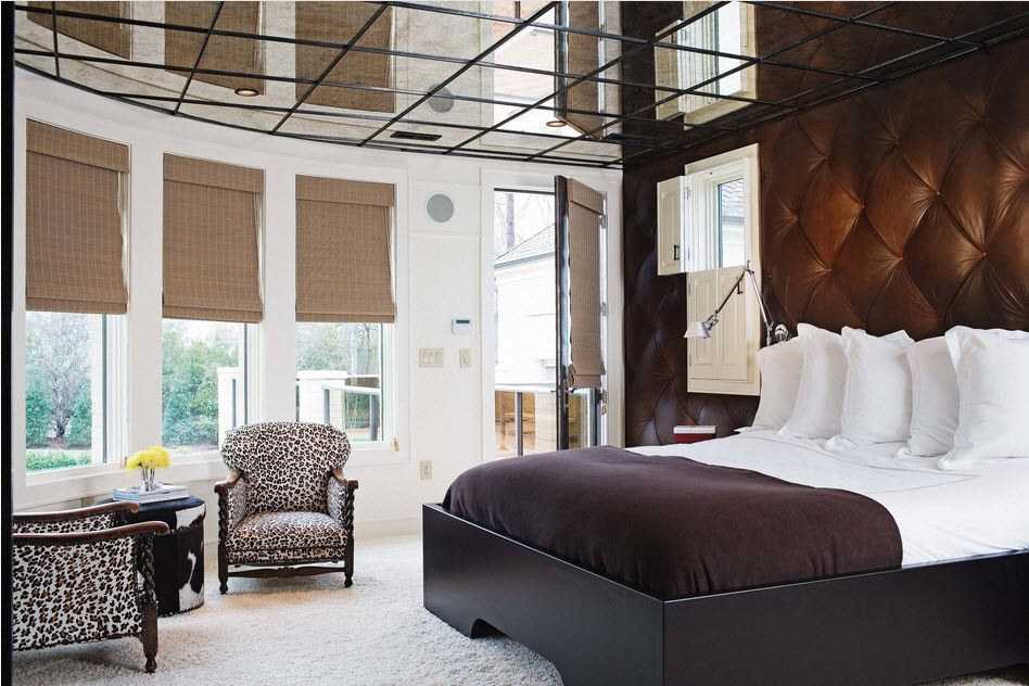- с помощью зеркального потолка можно произвести зонирование комнаты не только на фото, но и в реале (например, отдельные участки над кроватью или обеденным столом).