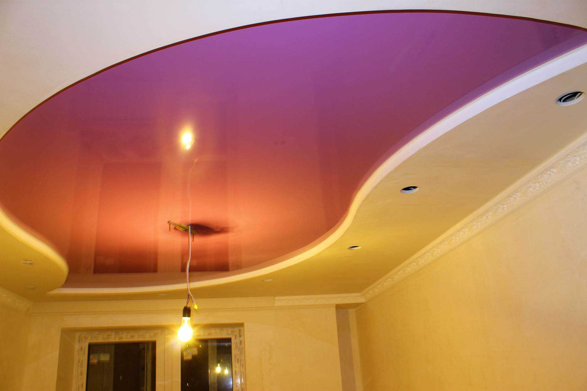 Вариантов исполнения глянцевых потолков существует очень большое количество, благодаря тому, что эта технология достаточно проста и популярна. Ниже, на фото представлены различные варианты конструкций натяжных потолков.