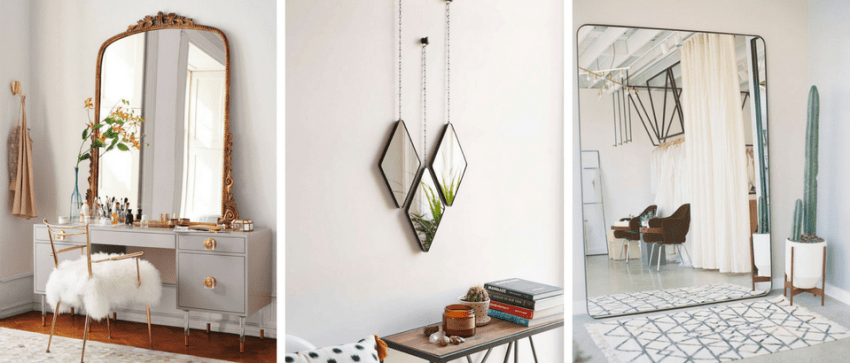 Выбирая самое подходящее место, можно просто переносить предмет, прикладывая его то тут, то там. Однако, если такое решение подходит для маленьких и средних по размеру моделей, вряд ли будет удобно таскать тяжеловесное зеркало. Придётся руководствоваться советами дизайнеров и собственным воображением.