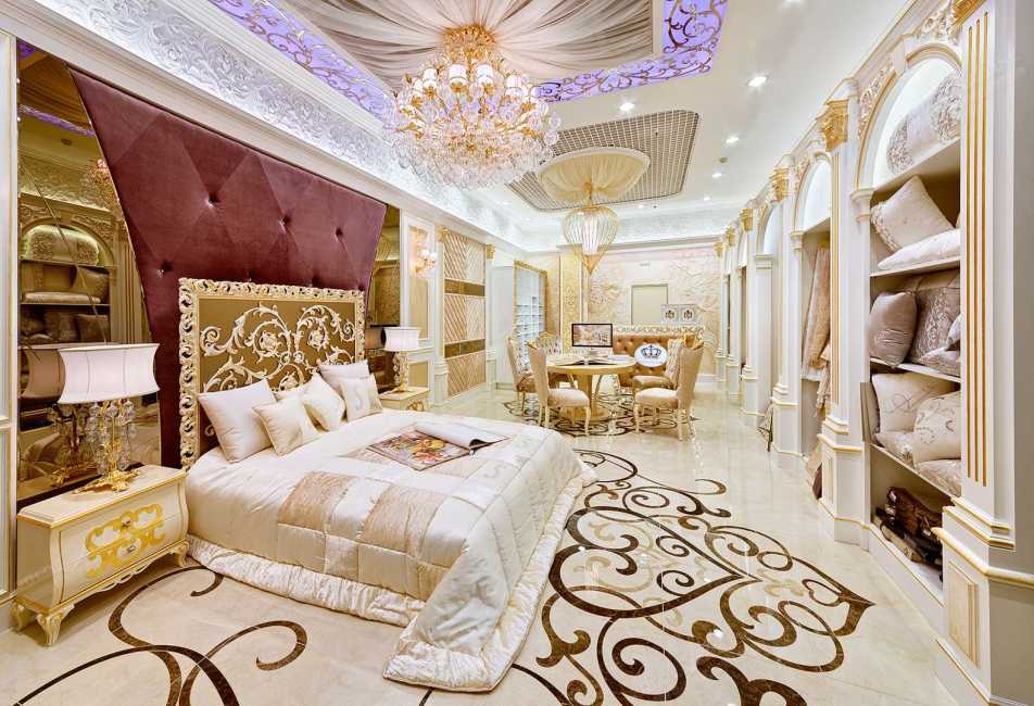 Золото будет одинаково хорошо смотреться и в больших залах, и в совсем скромных по размеру комнатках. За счет отражения света помещение всегда будет смотреться более просторным, воздушным. При этом оформление может быть выполнено в разных стилях, вплоть до футуризма. Меняется только оттенок и степень блеска.