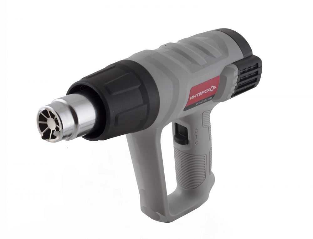 В обзоре лучших строительных фенов высокие позиции занимает бытовой агрегат с двумя режимами интенсивности обдува — 250 и 500 л в минуту. Оснащен регулятором, предлагается в комплекте с дополнительными насадками. Но при этом отзывы отмечают, что выставленная температура при использовании прибора может самостоятельно меняться вплоть до 10 °С в одну из сторон. Поэтому выбрать модель имеет смысл только для домашних нужд, где высокая точность не так принципиальна.