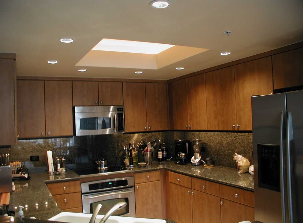 Что касается затемнений то, как правило, любые встроенные или подвесные источники света над местом приготовления пищи убирают все сильные тени от других светильников на кухне. Если в помещении используется всего лишь один или два источника света, то появление затемнённых участков неизбежно. Например, световой поток от обычной кухонной люстры, подвешенной под потолком, будет прерываться самим поваром. А это может создавать определённые неудобства во время приготовления. Учтите это.