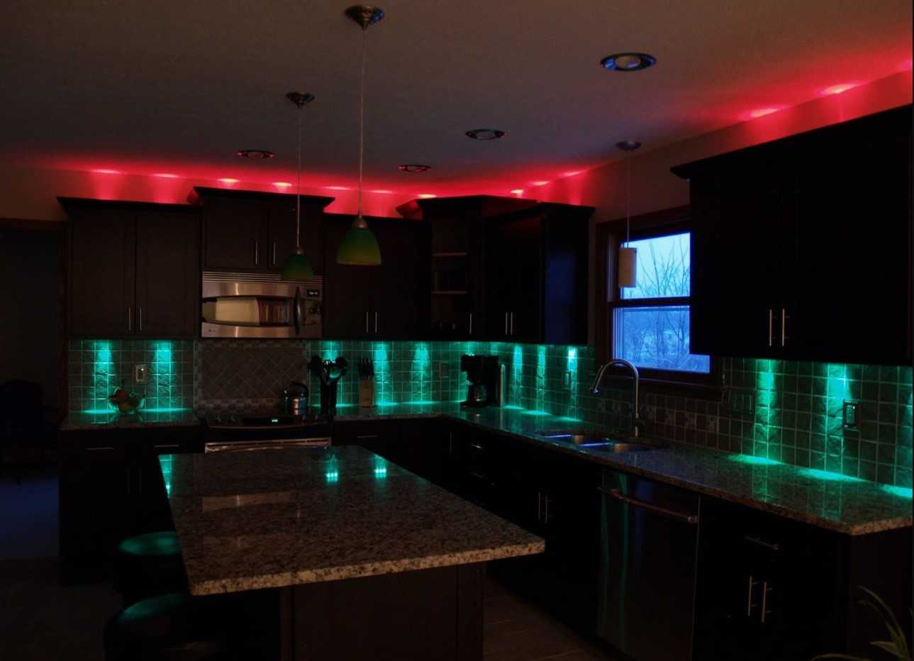 Лентами последнего поколения можно управлять при помощи пульта или же сенсорной панели, а в ночное время суток подобные устройства могут работать на минимальной мощности, что позволяет им играть роль ночника в помещении. Лампы могут воспроизводить красный, зеленый или другие цвета, благодаря чему светодиоды можно применять как яркий дизайнерский акцент в ходе обустройства кухонь.