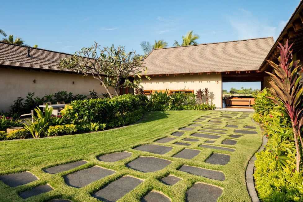 Правильно спроектированная бетонная дорожка должна вызывать интригу: виться не по границе открытых и закрытых пространств, а прятаться в тени зарослей. Расположение конечного пункта до последнего момента остаётся загадкой: скрывается в верхней части лестницы, за раскидистым кустом, углом строения.