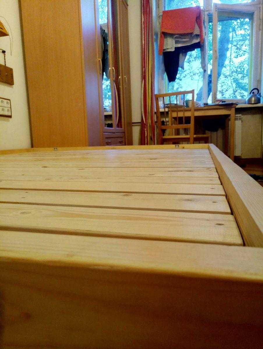 Ее дизайн и внешние данные в целом зависят только от личного вкуса и пожеланий. Поперечные брусы соединяются саморезами и клеем. Под силовой элемент в середине делаются отверстия, точно повторяющие размеры лонжерона. Но расстояние между ними не должно превышать 45 мм. Средняя толщина массива, как правило, не должна превышать 50 мм. А ширина спинки обязательно должна ровняться ширине матраса. Другие варианты только доставят дискомфорт и неудобство.