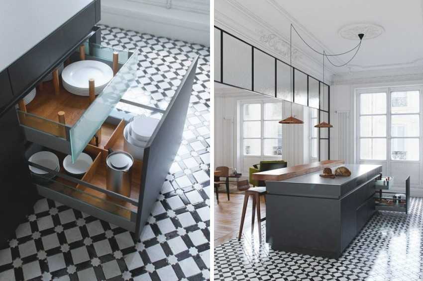 Правило светлых и темных оттенков также работает в случае, если необходимо сузить или визуально расширить помещение. Особенно это актуально для маленькой кухни, в которой светлый пол будет визуально растворять границы пространства.