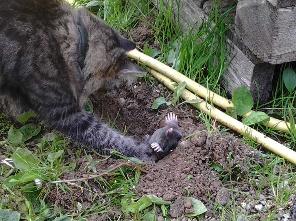 Если в доме есть кот-мышелов, он легко переквалифицируется, если ему показать, как крот шевелится в подземном проходе в момент выбрасывания почвы на поверхность.