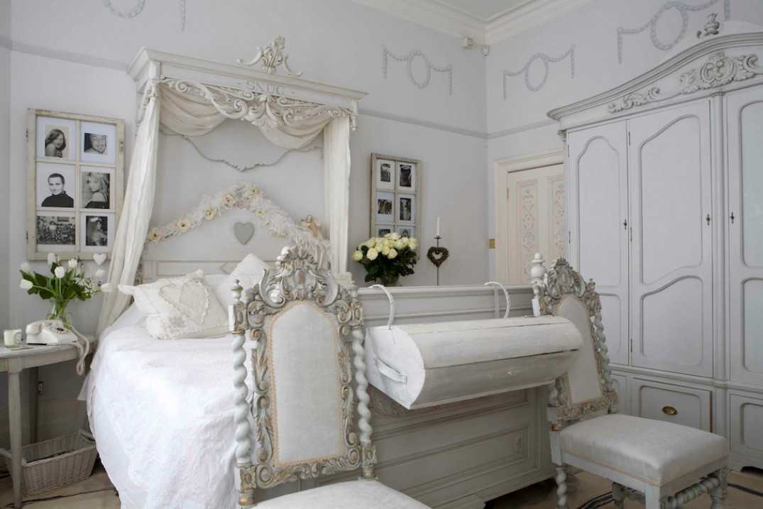 В отделке и мебели все в плавных линиях, много резных конструкций и дерева. Последнее оставлено в своих естественных коричневых оттенках, в отличие от других классических стилей, где оно чаще красилось в белый.