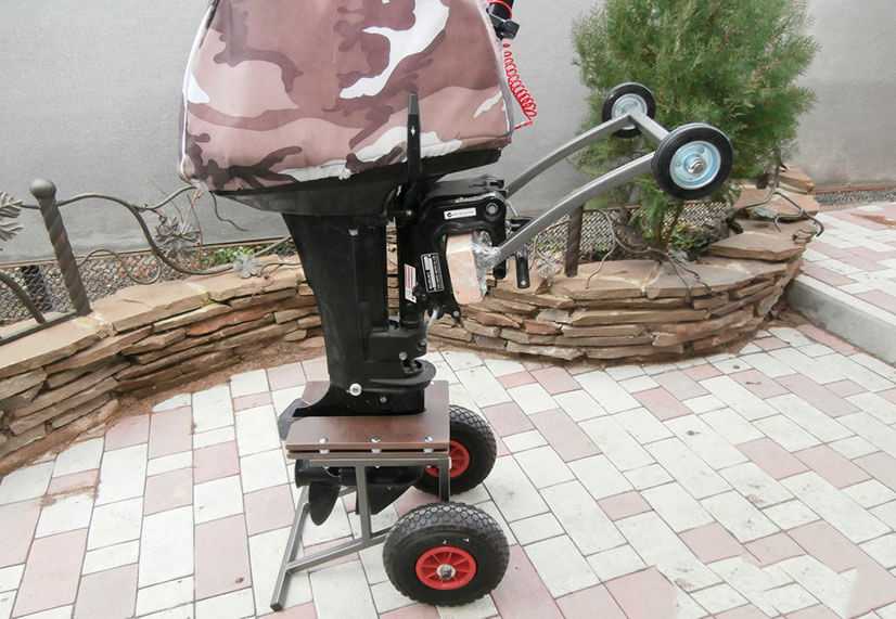 - Для установки мотора на лодку тележку аккуратно вытягивают из машины и поставив в вертикальное положение катят к ней.