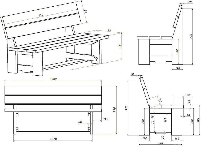 Чертеж лавочки со спинкой поможет тщательно всё подготовить