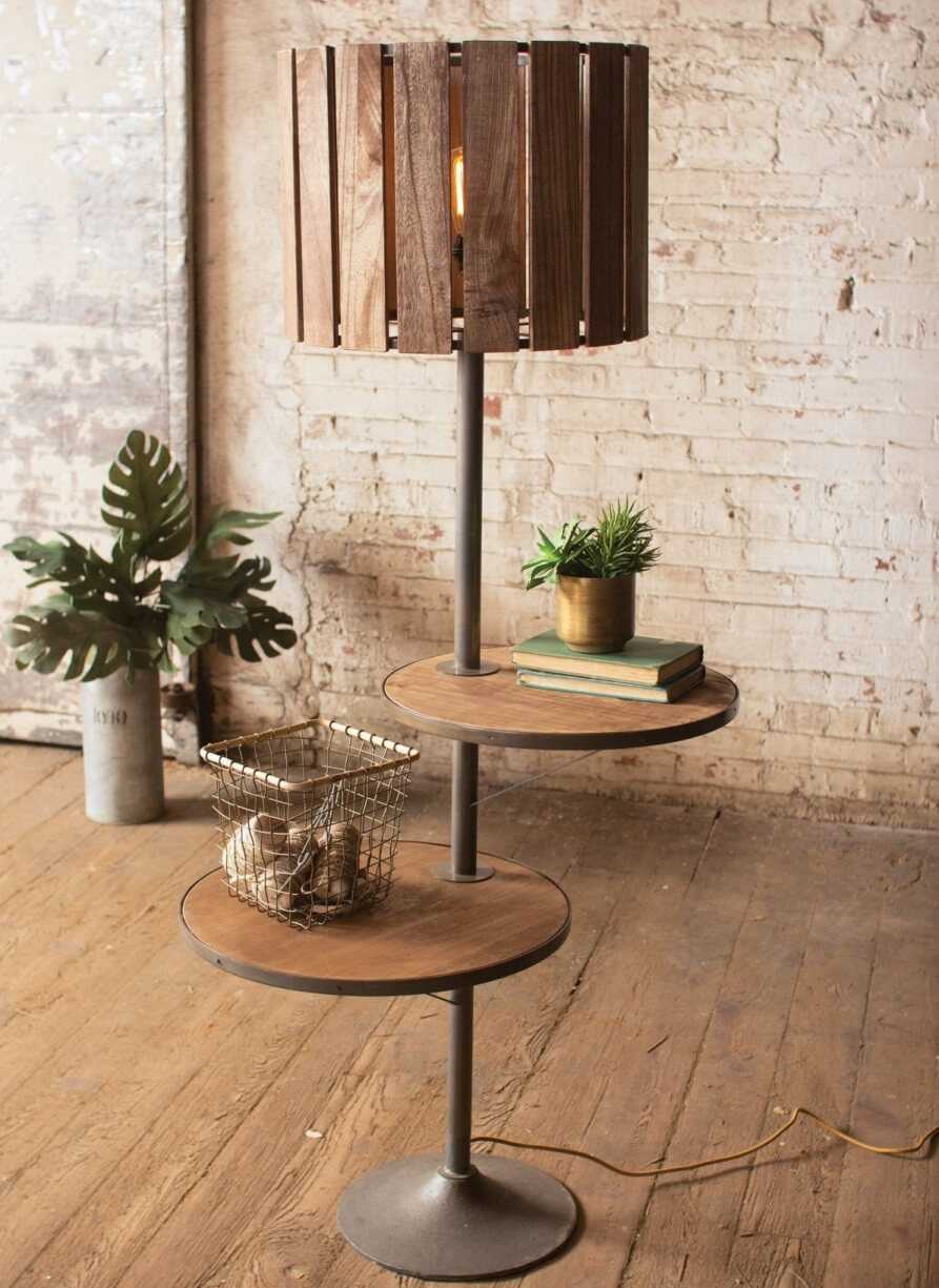 Светильник превращается в небольшую, но полноценную этажерку, которая может служить вам для самых разных целей. Самое приятное, что изготавливаются такие торшеры под любой тип интерьера, так что такое удобство могут попробовать хозяева помещений в самой разной стилистике.