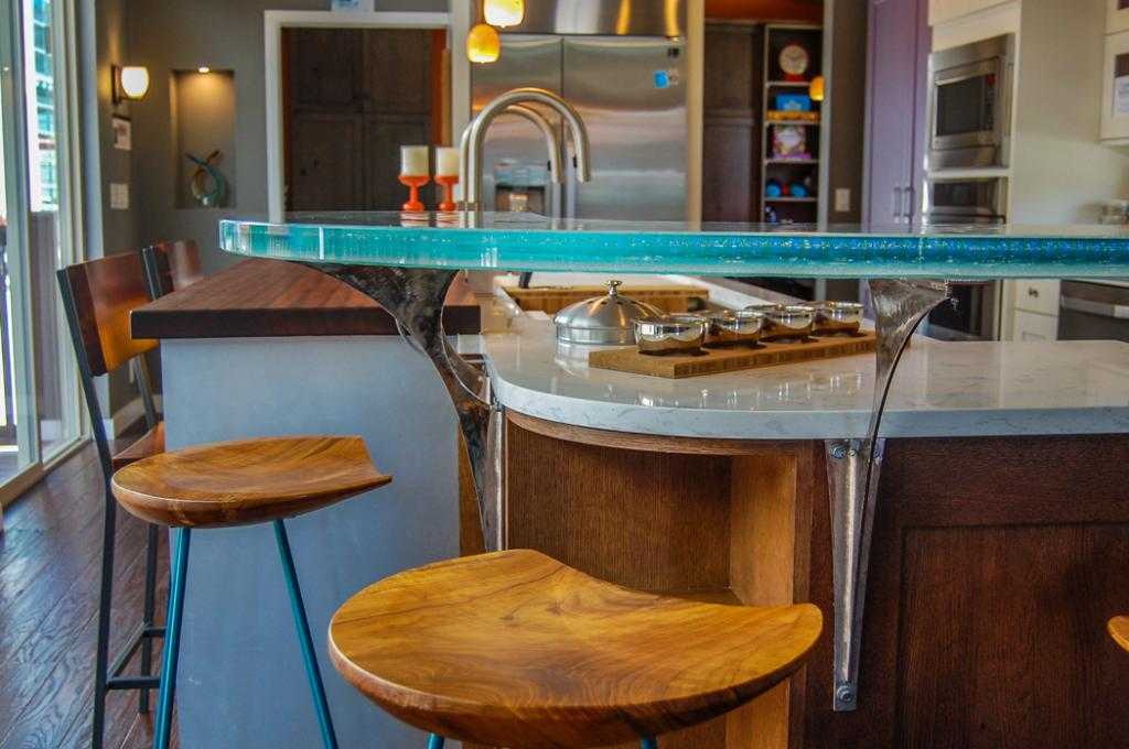 Поверхность стойки для завтрака обязана быть неуязвима к теплу — на нее может ставиться посуда с горячими блюдами либо напитками. А если столешница служит зоной для работы, то покрытие также должно держать механичные влияния. Очень удобны изделия из ненатурального камня.