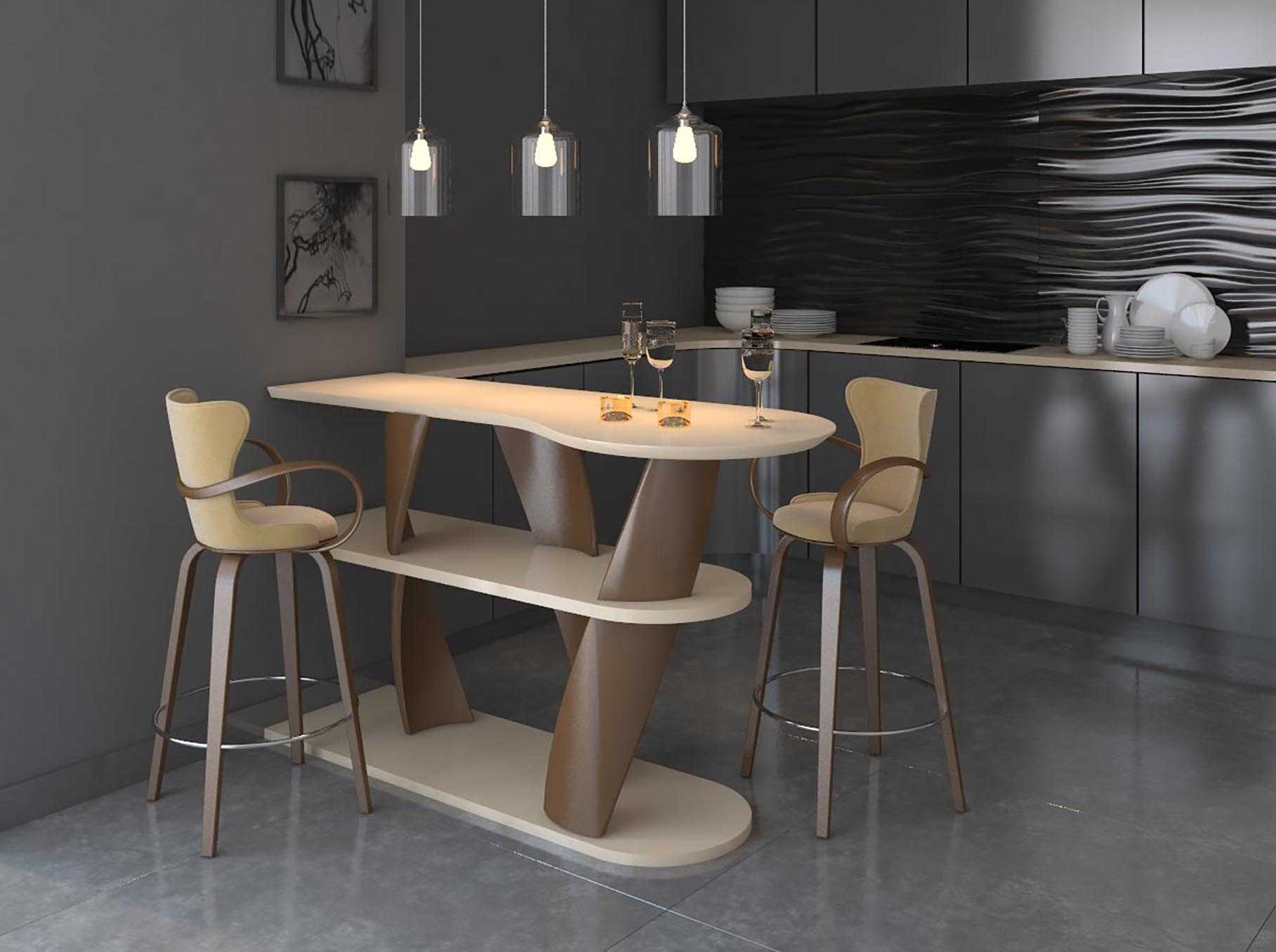 На фото барная стойка для кухни в современном стиле, выполненная из МДФ.