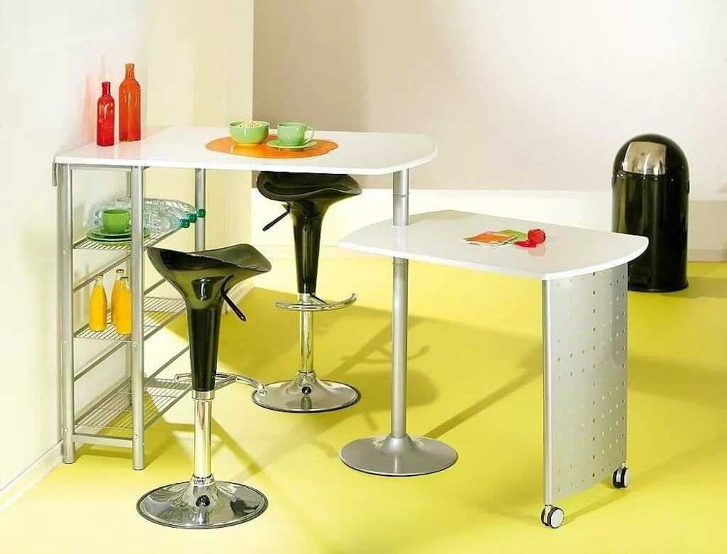 Столы барного типа – универсальны, они подходят для больших и маленьких кухонь