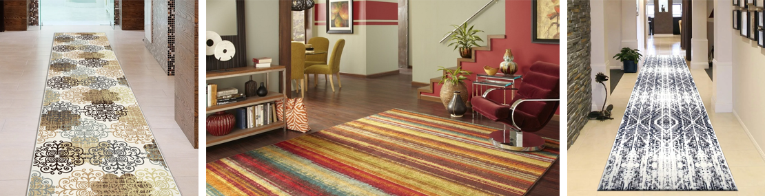 В помещения с небольшой площадью лучше выбирать неяркие дорожки, чтобы не исказить размер пространства.