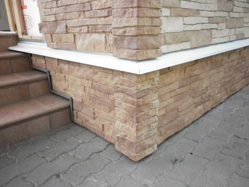 Важно! Желательно, чтобы, помимо обычных плиток, в комплекте шел угловой искусственный камень. Это существенно упростит и ускорит укладку на цоколь