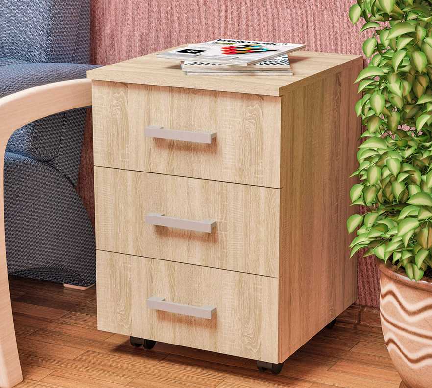 Подкатная тумба изготавливается из разных материалов, каждый из которых характеризуется индивидуальными особенностями: