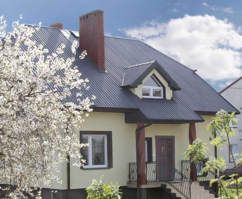 Для обустройства крыши дома использован кровельный профнастил