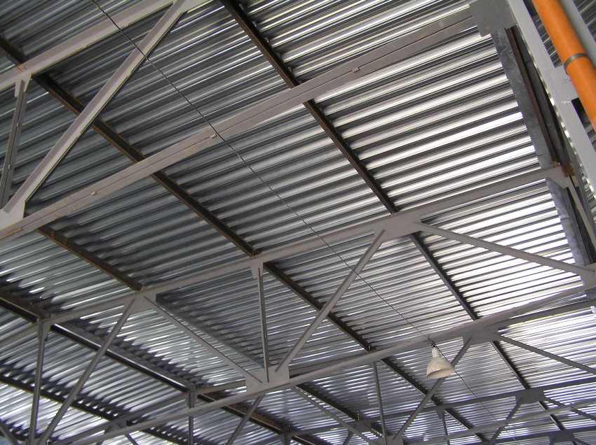 Плоская крыша из профнастила — вид изнутри
