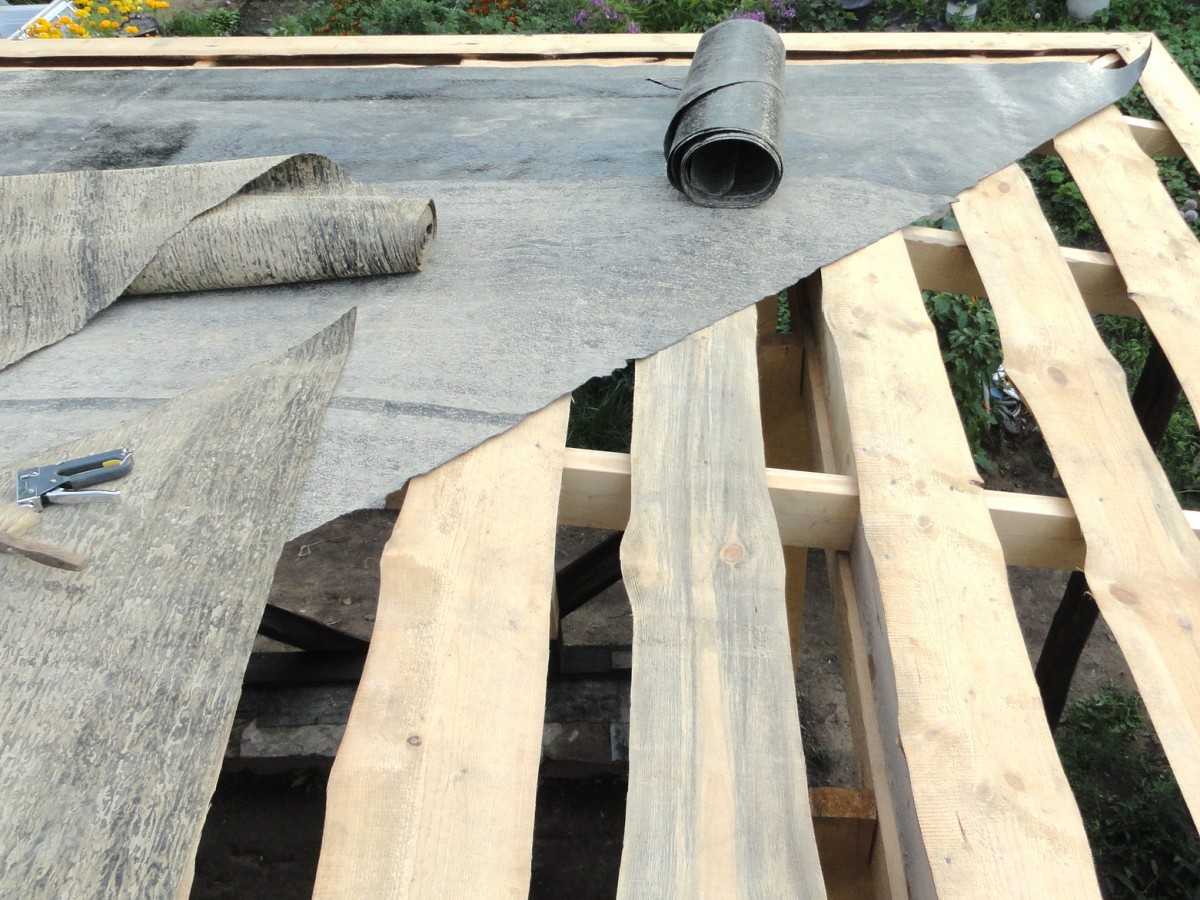 Рубероидом обычно покрывают легкие конструкции, т.к. материал недорогой, но имеет отличные гидроизоляционные свойства.