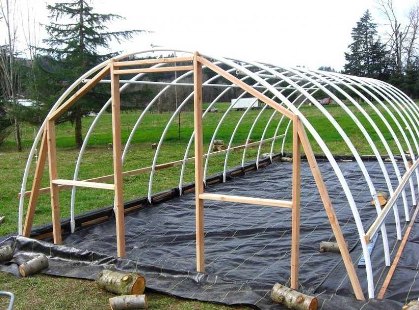Изготовление каркаса. Наиболее популярным видом теплиц считаются арочные, в которых все силовые детали изготавливаются из стальных или ПВХ-труб. Металлические каркасы являются более надёжными, долговечными, практичными. Пластиковые характеризуются простотой сборки, отсутствием необходимости проводить сварочные работы для соединения деталей.