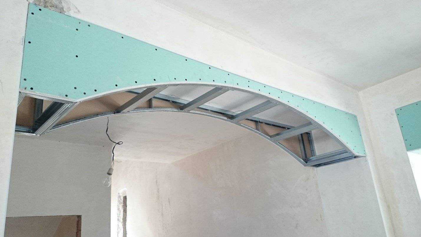 Рассмотрим процесс создания арки из гипсокартона на примере арки в дверной проем.