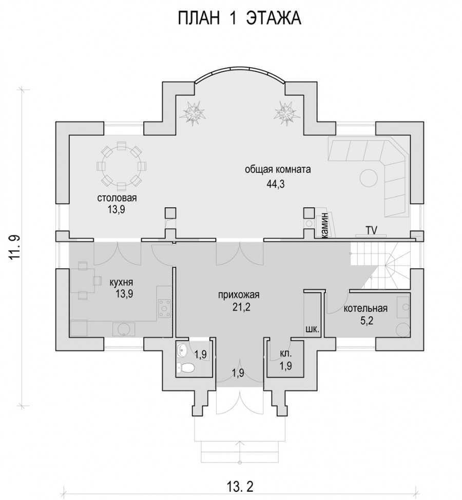 Для начала осуществляется зонирование первого этажа. В основном его план одинаков в большинстве проектах, обязательно здесь размещается прихожая, кухонная зона, бойлерная, гостиная и санузел, которым смогут воспользоваться и домашние, и гости.