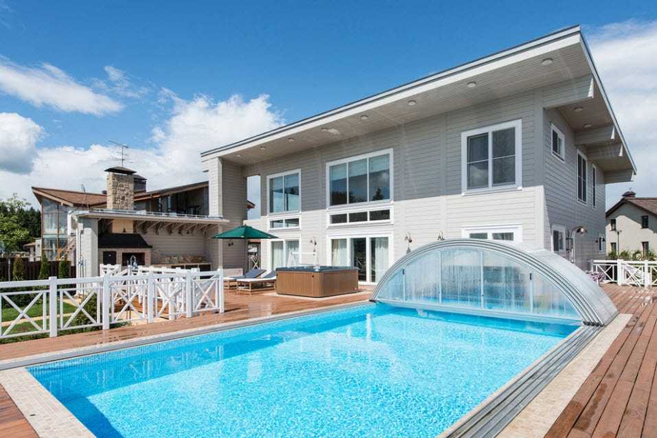 - Выглядит такой дом весьма солидно и подчеркивает статусность хозяев