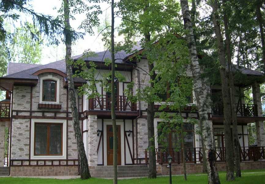 Все постройки этого стиля считаются комбинированными. Сочетание каменных материалов и дерева обеспечивает зданиям необходимую прочность и долговечность. Классический вариант дома – первый этаж с хозяйственными и бытовыми помещениями, и второй, где располагают жилые комнаты.