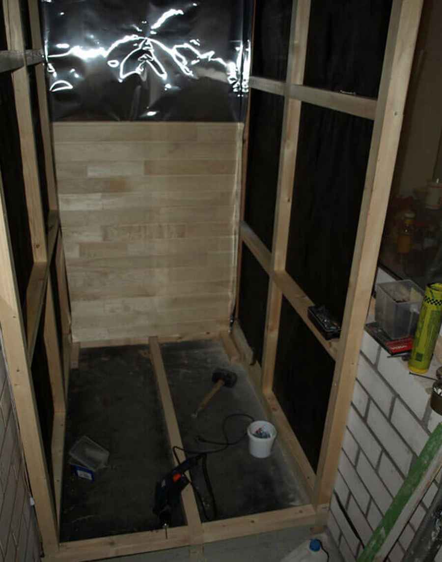 Каркас, обрешетку, внешнюю и внутреннюю обшивку, а также полок необходимо изготавливать из качественной древесины. Не нужно забывать о пароизоляции. В качестве пароизоляционного слоя можно использовать специальный пергамент.