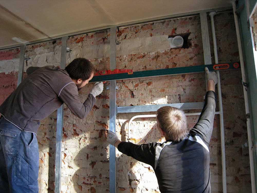 - Выравнивание стен с помощью специальных штукатурных смесей.