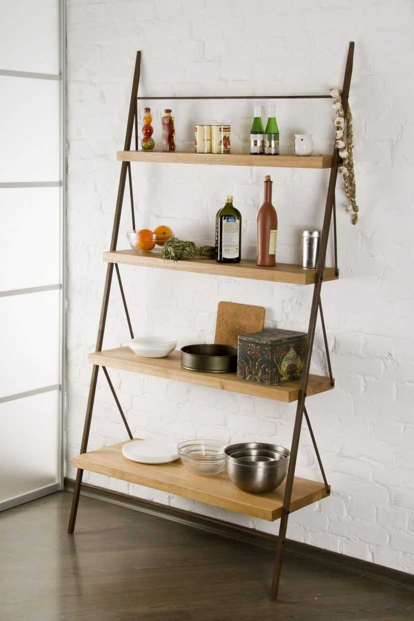 На кухне при помощи стеллажа можно организовать место хранение посуды или различных баночек с приправами и крупами.