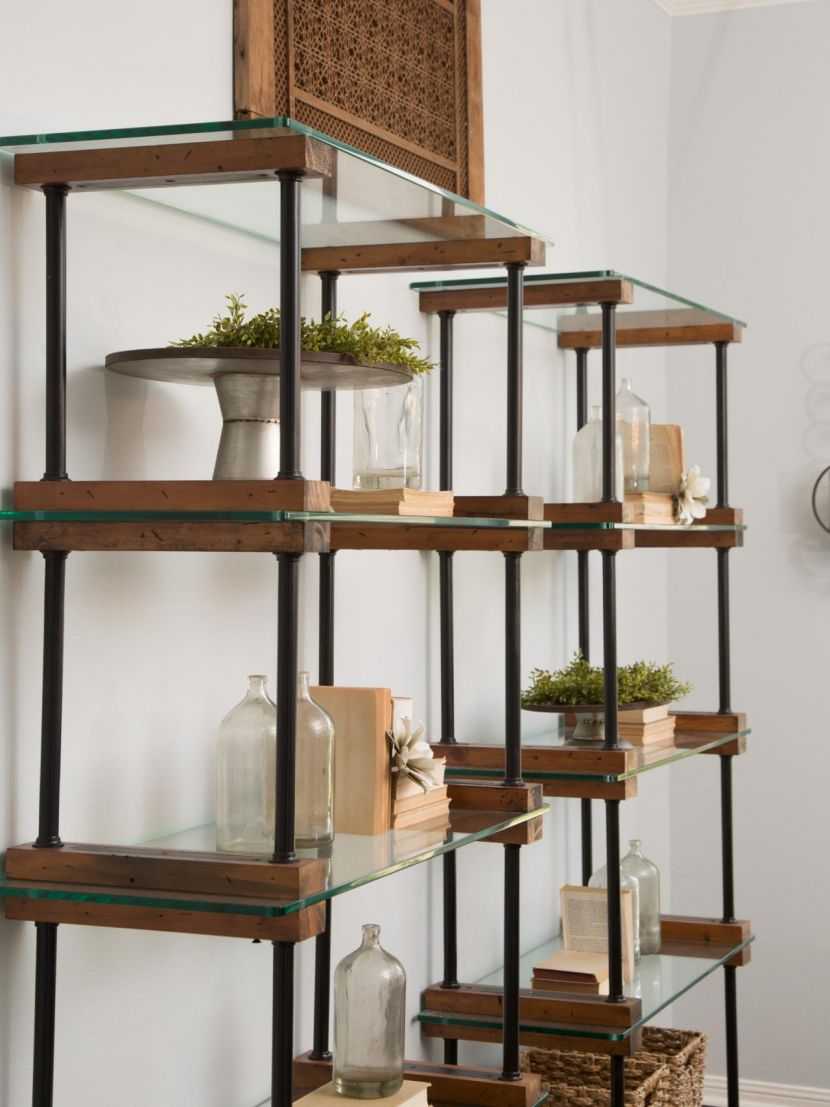 - Стекло может быть материалом для полок, как по отдельности, так и в общей конструкции.
