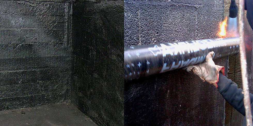 Данный способ применяется для защиты от проникновения воды через наружные стены и пол защищаемого помещения. При необходимости возможно использование данного материала для изоляции внутренних стен на высоту 1 м от пола.