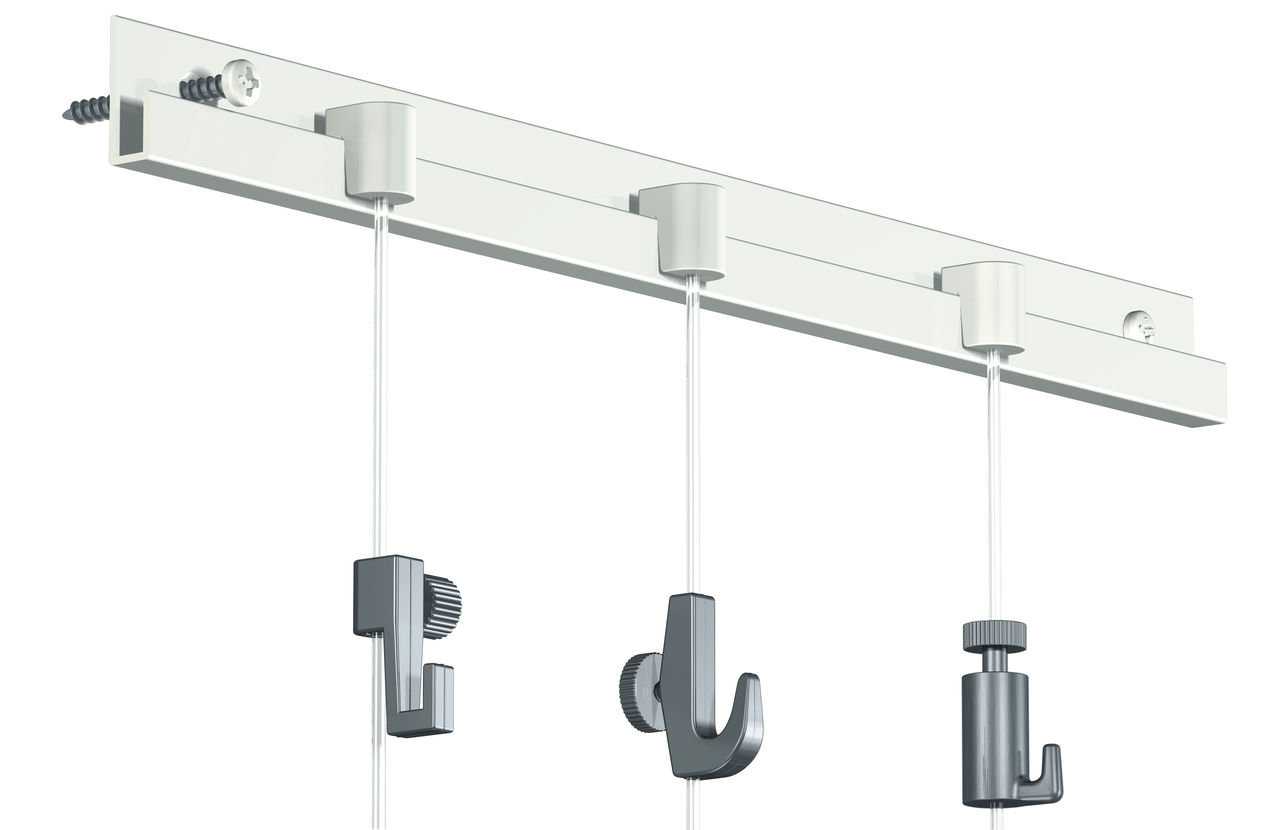 Карнизная рельса позволит разместить несколько картин. Их можно развесить как на одном, так и на разных уровнях.