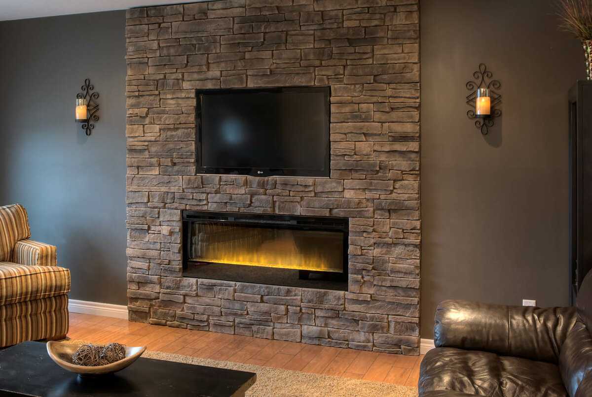 Камень может окрашиваться после штукатурного слоя, либо подчеркивать отдельные элементы комнаты, на фоне краски, камень выкладывается в виде рам около окон, дверей, каминов.
