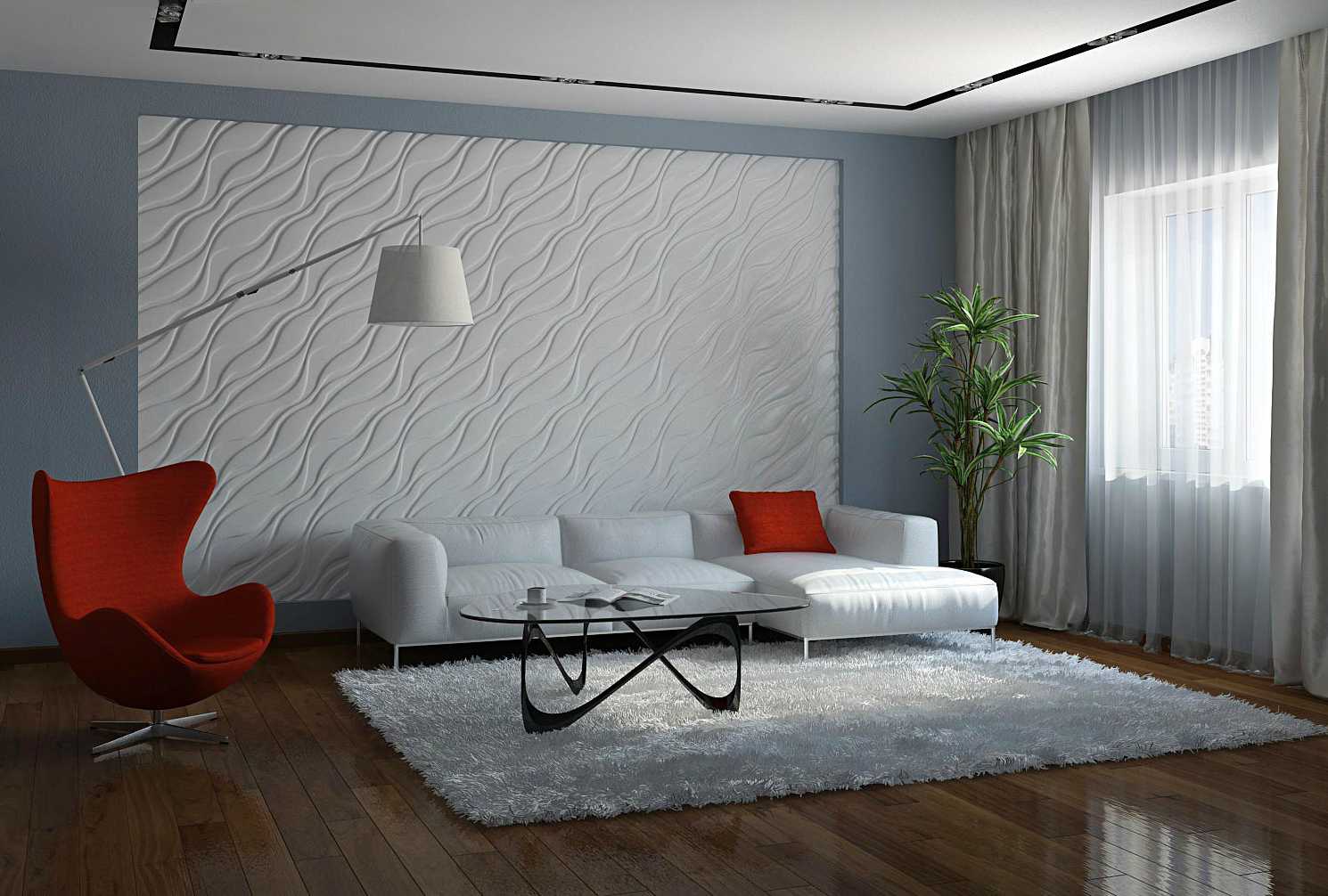 3-д панели отличаются своей фактурностью, поэтому они могут хорошо выглядеть на фоне ровной прокрашенной стены, создавай некий контраст.