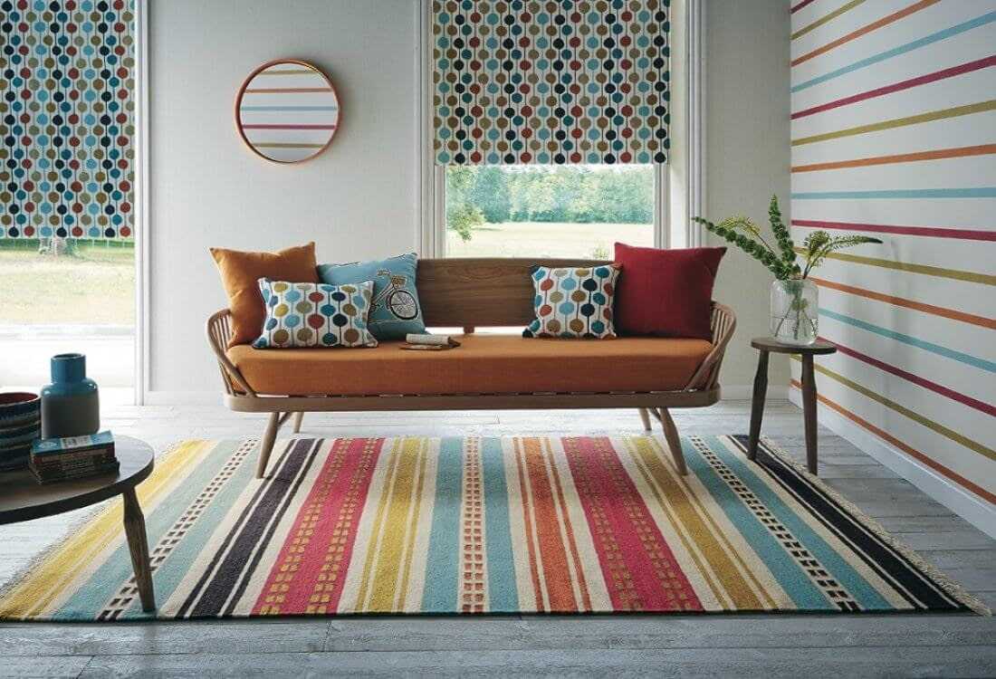 Яркие цветовые акценты в интерьере можно создавать с помощью ковра