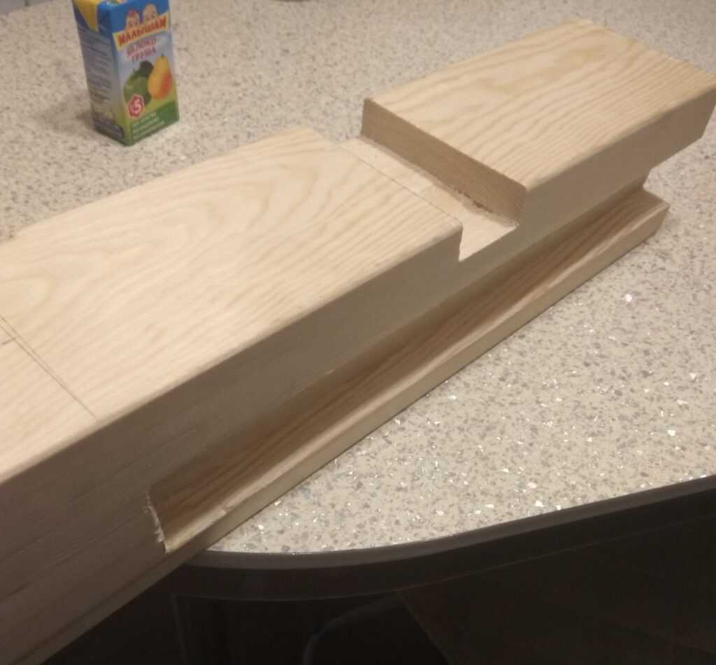 За неимением фрезера, все пазы для соединения деталей выпиливали паркетной циркуляркой, выбирая лишнюю древесину стамесками. Глубина всех пазов – 2 см – оптимальная врезка, держит крепко, при этом не дает излома. Работали вдвоем с мужем. Слаженная бригада из нас редко получается, этот раз тоже исключением не стал. До развода не дошло, но словарный запас расширили отлично.