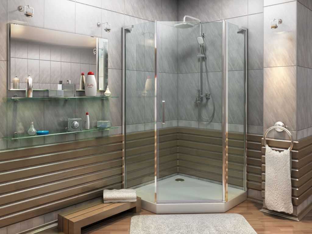 Для душевых ограждений перечень материалов скромнее: стенки и дверцы кабин изготавливают из закаленного стекла и прозрачного пластика, в эксклюзивных моделях может использоваться дерево. Каркас производят из алюминия и пластика с защитно-декоративным покрытием.