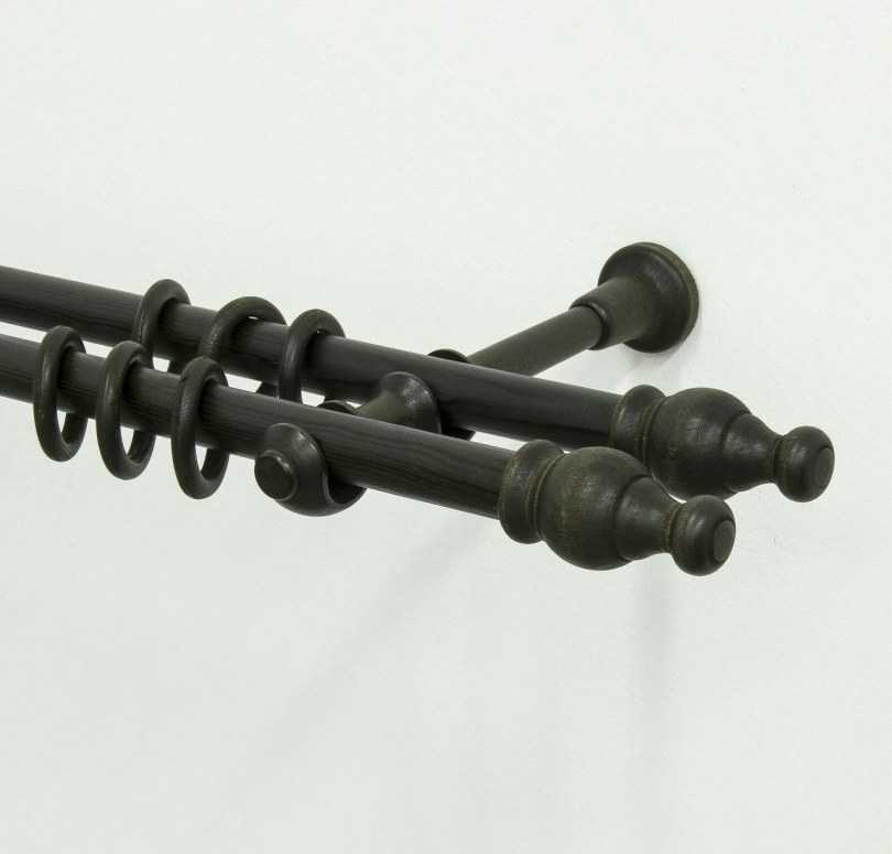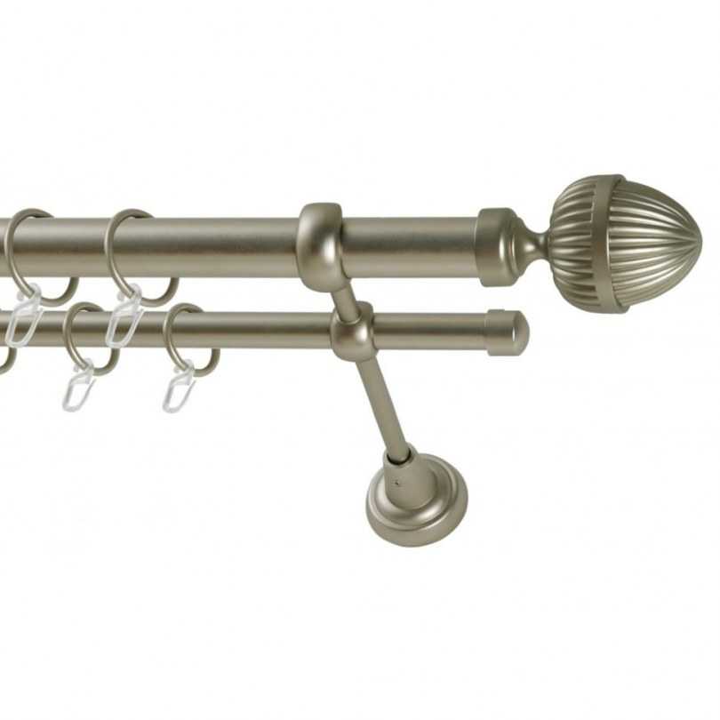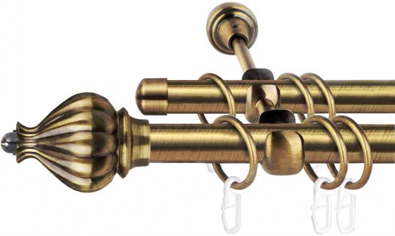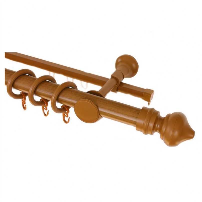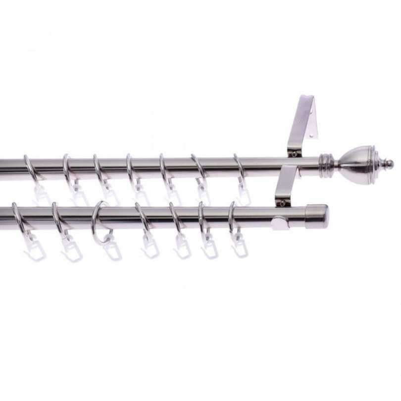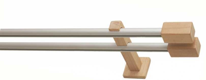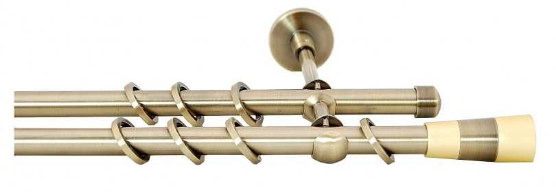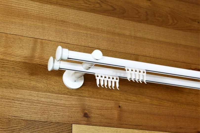 - Двухрядный настенный карниз. Являются универсальными моделями, чаще всего встречающимися на практике. Отлично подходит для классических стилей интерьера, так ка позволяет использовать два типа штор (для дневного и ночного пользования).