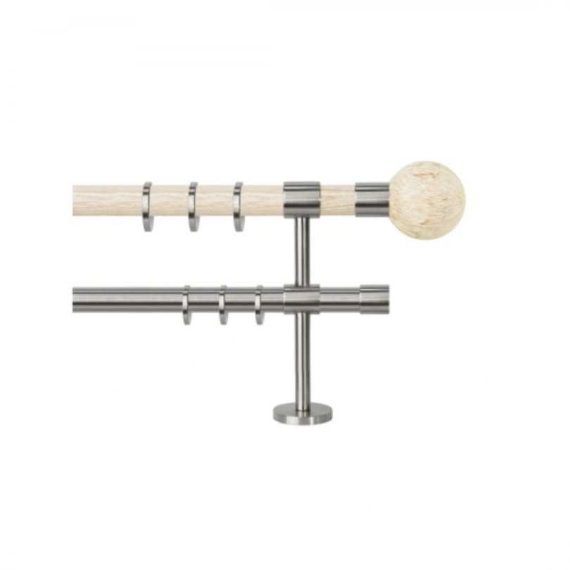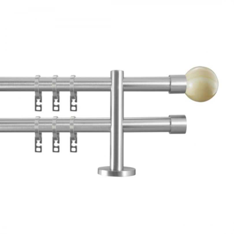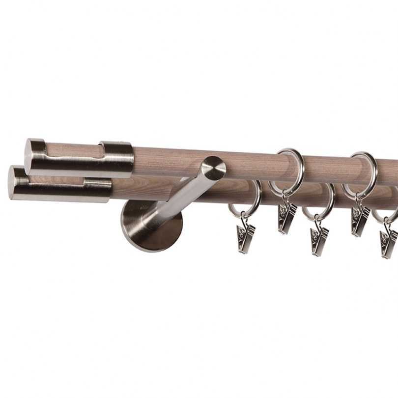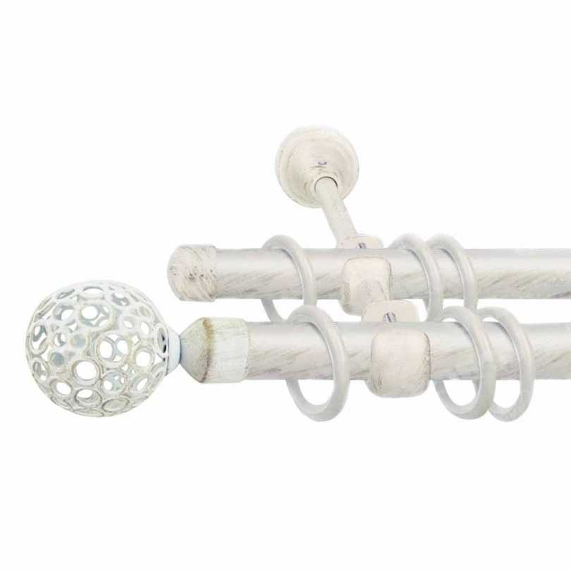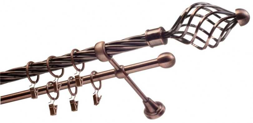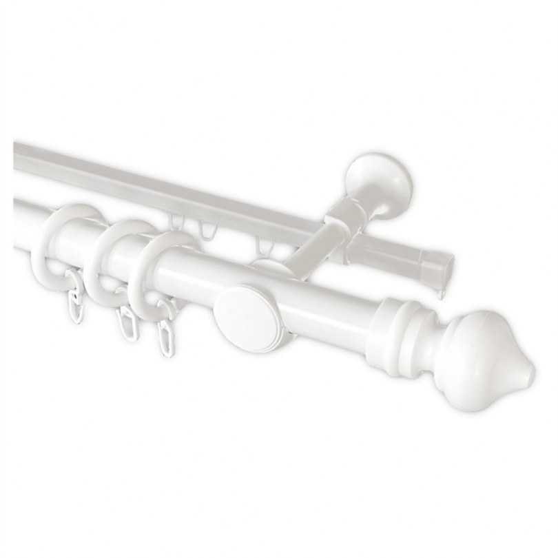 - Двухрядный настенный карниз. Являются универсальными моделями, чаще всего встречающимися на практике. Отлично подходит для классических стилей интерьера, так ка позволяет использовать два типа штор (для дневного и ночного пользования).