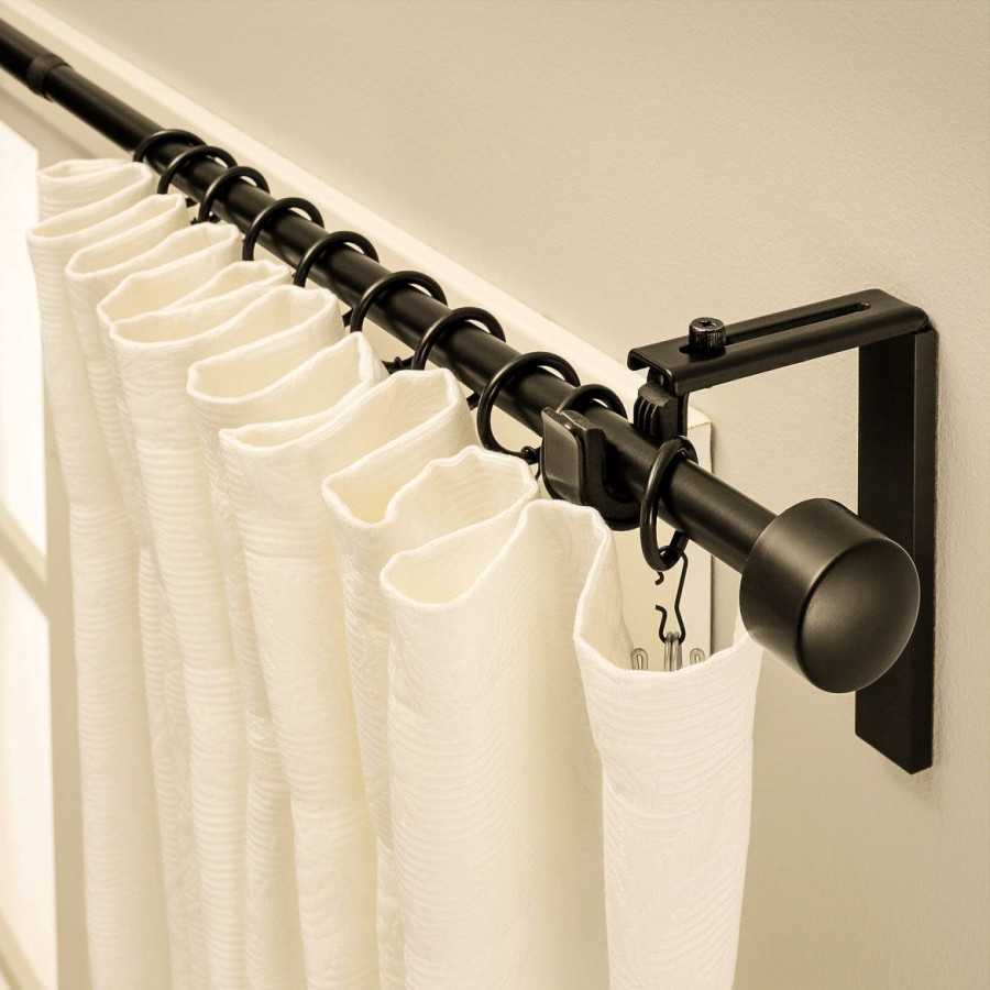 - Расстояние от стены подбирается таким образом, чтобы шторы не касались подоконника и батареи отопления.
