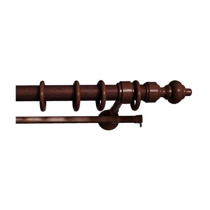 Для «кантри» также лучше рассмотреть вариант круглых карнизов, только в этом случае обращайте внимание на темные массивные варианты. Они обязательно должны сочетаться с другими деревянными элементами оформления