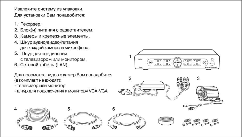 Распакуйте оборудование, проверьте его целостность. Приготовьте необходимый инструмент и комплектующие: металлическую гофру или пластиковый кабель-канал для проводов. На этом этапе необходимо решить, где будет установлен рекордер. Желательно, чтобы он находился в труднодоступном, но сухом месте.
